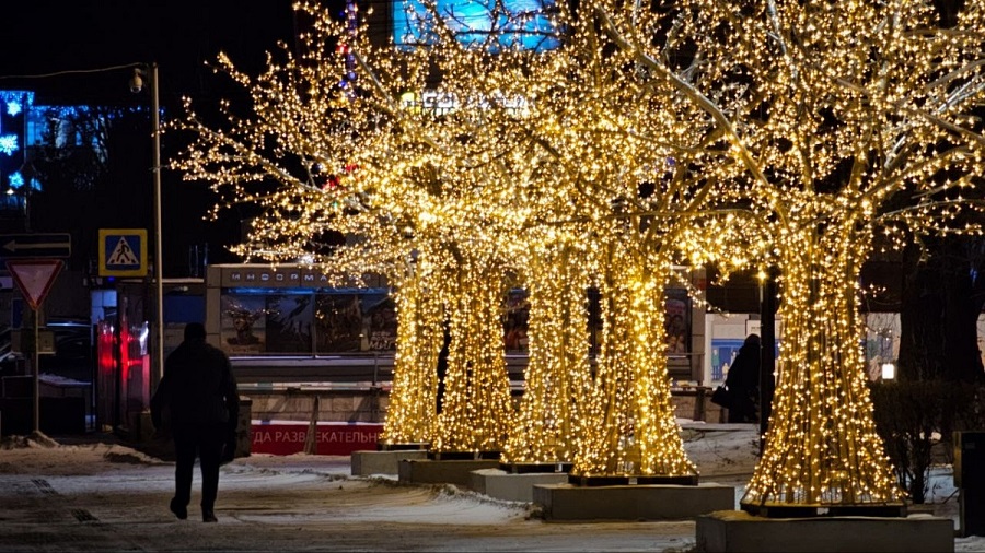 КРАСНОЯРСКИЙ КРАЙ, /НИА-КРАСНОЯРСК/. В Красноярске начинают включать светящиеся деревья и другие новогодние конструкции, создавая особое праздничное настроение в популярных местах для прогулок.