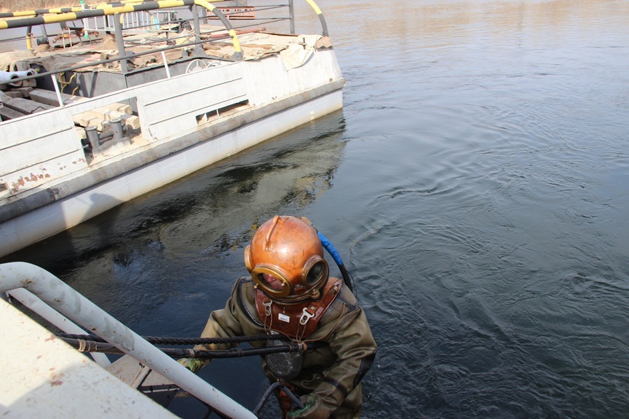 КРАСНОЯРСКИЙ КРАЙ, /НИА-КРАСНОЯРСК/. Перед основной волной весеннего половодья коммунальные подводники обследуют дюкерные переходы — трубопроводы, соединяющие водозаборы на островах с водопроводными сетями на берегу.