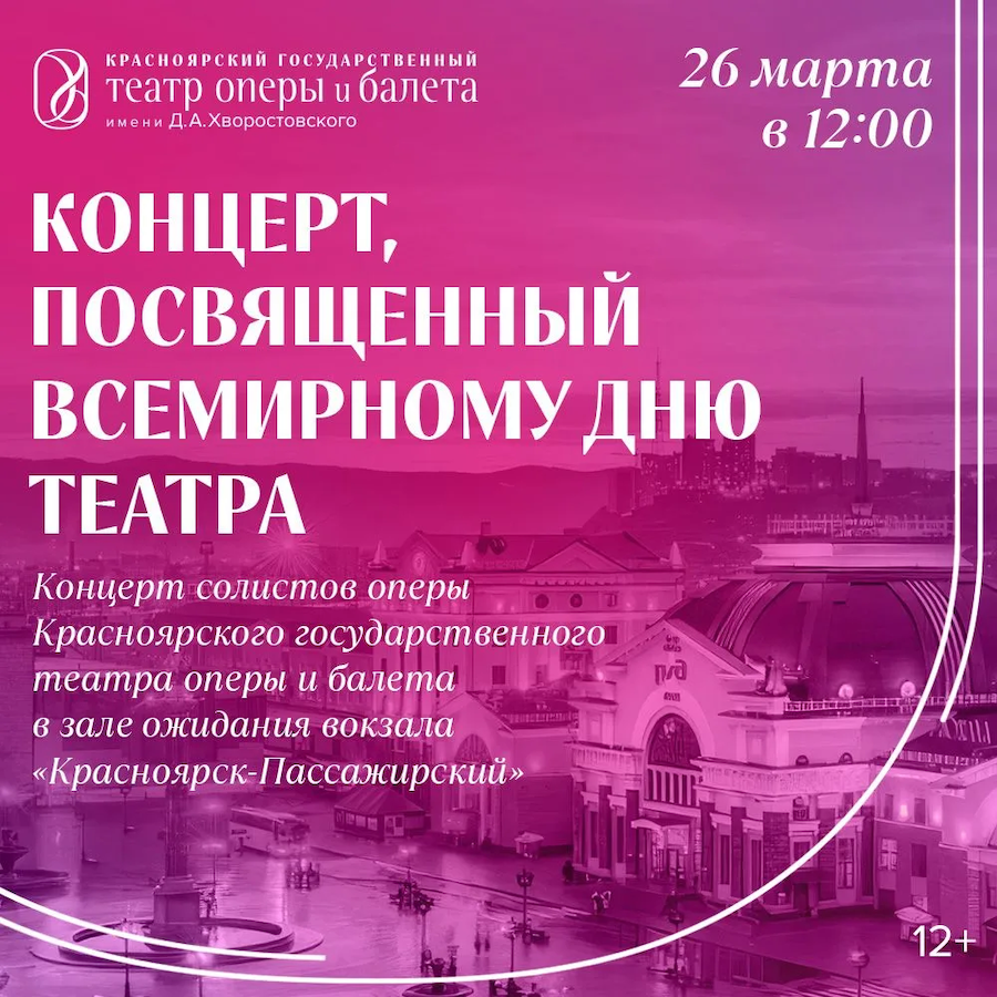 Лента новостей Красноярский край2026-03-26 - 2026-03-26 В Красноярске на железнодорожном вокзале пройдет оперный концерт ко Дню театра