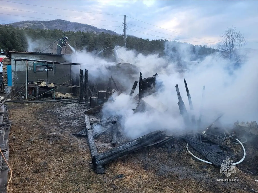 КРАСНОЯРСКИЙ КРАЙ, /НИА-КРАСНОЯРСК/. Утром в поселке Красный Хутор Шушенского муниципального округа на улице Центральной загорелись хозяйственные постройки.