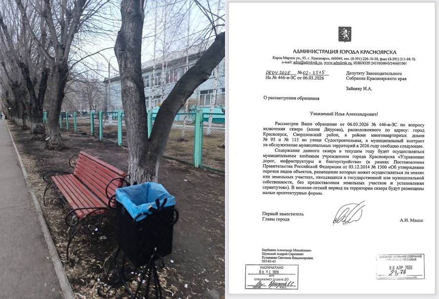 КРАСНОЯРСКИЙ КРАЙ, /НИА-КРАСНОЯРСК/. Аллея Диурова в Свердловском районе перешла на обслуживание Управления дорог, инфраструктуры и благоустройства. Теперь именно это учреждение отвечает за уборку, вывоз мусора и общее состояние территории. В Шарыпове подростков заподозрили в кражах из незапертых автомобилей