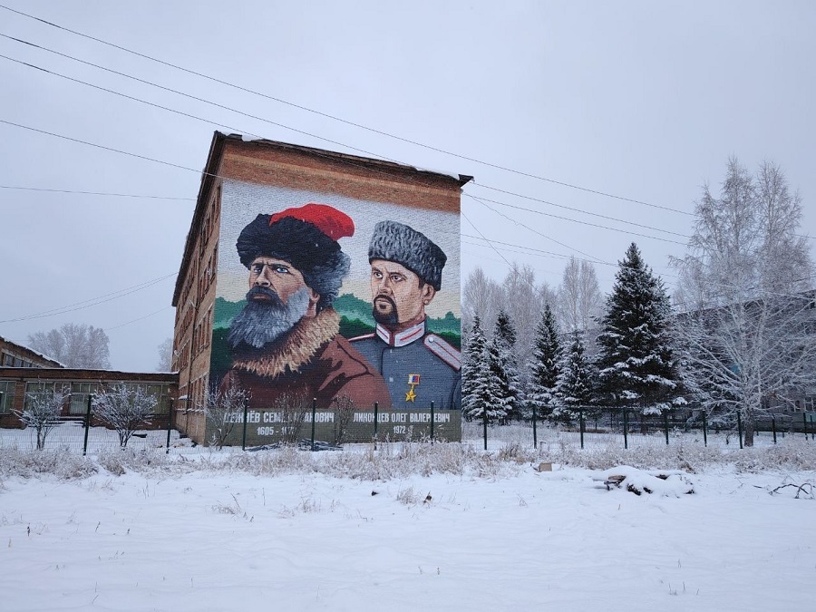 КРАСНОЯРСКИЙ КРАЙ, /НИА-КРАСНОЯРСК/. Фасад казачьего кадетского корпуса в Подтесово (Енисейский округ) украсили масштабным муралом в честь героев казачества. На красноярском острове Татышев начнут заливать каток