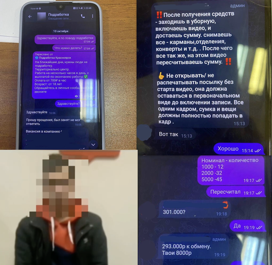 «Нашел в Telegram подработку»: 22-летний курьер мошенников из Красноярска пойдет под суд