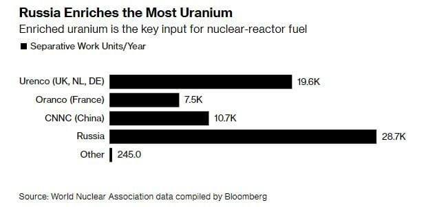 Второе место в мире по обогащению урана занимает объединенная Европейская корпорация Urenco. На третьем месте – Китай. Об этом сообщает ТГ-канал «Деньги в банке».