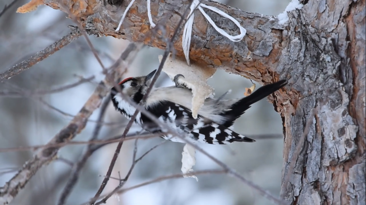 Малый пестрый дятел – один из самых мелких дятлов Восточной Европы и Северной Азии. Круглый год питается беспозвоночными, собирая их со стволов деревьев и под корой. Изредка ловит насекомых в воздухе, сообщает пресс-служба нацпарка.